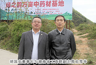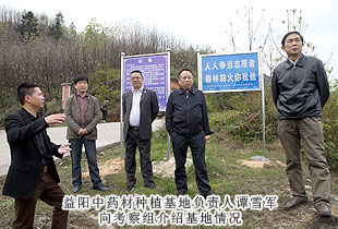 2013年4月13日,為深入了解湖南省“萬企聯(lián)村?共同發(fā)展”30個省級優(yōu)秀示范項目之一的——綠之韻益陽安化萬畝中藥材種植基地建設情況,湖南省工商聯(lián)副主席史雪華、湖南省工商聯(lián)扶貧處處長甘露、會員處處長謝明亮、副處長張耿、中共湖南省委統(tǒng)戰(zhàn)部經濟處副處長周桂忠一行赴綠之韻安化萬畝中藥材基地實地考察。中共安化縣委常委、政法委書記羅必勝,安化縣冷市鎮(zhèn)鎮(zhèn)長周華山,湖南省政協(xié)委員、省工商聯(lián)常委、長沙市工商聯(lián)副主席胡國安陪同考察。