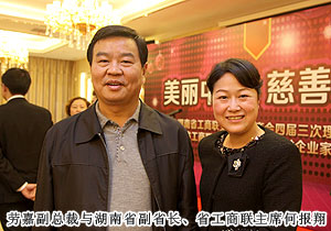在隨后舉行的晚宴上,湖南省副省長、省工商聯(lián)主席何報翔祝賀所有獲獎的女企業(yè)家們,并希望所有的企業(yè)家都能以她們?yōu)榘駱?,充分發(fā)揮自身優(yōu)勢,不斷增強企業(yè)發(fā)展的新動力,為加快富民強省、實現(xiàn)科學跨越發(fā)展做出新的更大貢獻。勞嘉副總裁作為優(yōu)秀女企業(yè)家代表,與何報翔副省長等各級領導深入交流了關于促進湖南經(jīng)濟快速平穩(wěn)發(fā)展的若干建議以及企業(yè)未來的發(fā)展規(guī)劃,受到了各級領導的肯定。