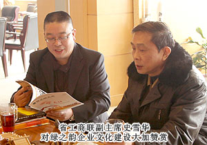 在深入親切的交談中,省工商聯(lián)扶貧處處長甘露指出,多年來綠之韻集團在發(fā)展壯大企業(yè)的同時帶動社會就業(yè)創(chuàng)業(yè),關(guān)注公益慈善、扶貧助困事業(yè);發(fā)布企業(yè)社會責(zé)任報告,倡導(dǎo)并履行主流的社會價值觀念和道德理想,在為社會創(chuàng)造價值的同時,承擔(dān)起企業(yè)社會責(zé)任,為新一代成長型企業(yè)做好了示范、樹立了榜樣。希望綠之韻以十周年為契機,再接再厲,不懈努力,用新的發(fā)展、新的業(yè)績?yōu)楹鲜〗?jīng)濟社會發(fā)展作出更大的貢獻。