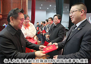 作為業(yè)界楷模的胡國安董事長,因其自身卓越的創(chuàng)業(yè)活動和非凡的企業(yè)管理經(jīng)驗(yàn),以及頗受贊譽(yù)的社會聲望和影響力,獲評“2012年度湖南省最受職業(yè)經(jīng)理人尊敬的十大企業(yè)家”,省人大常委會副主任陳叔紅為胡國安董事長授予獎杯和榮譽(yù)證書。胡國安董事長表示:“湖南經(jīng)濟(jì)的騰飛造就了一大批杰出企業(yè)家,如今,要將企業(yè)家個人的智慧內(nèi)化為企業(yè)的靈魂,就有賴于經(jīng)理人制度的發(fā)展和完善。綠之韻集團(tuán)無論在制度設(shè)計(jì)上還是管理上,都注重對職業(yè)經(jīng)理人、對人才的長期培養(yǎng),一批批優(yōu)秀的專業(yè)人才在綠之韻迅速崛起,使企業(yè)運(yùn)作更加職業(yè)化和市場化。綠之韻的成功不僅在于做大做強(qiáng)了企業(yè),更重要的是能培養(yǎng)一支忠誠感強(qiáng)、能夠不斷創(chuàng)造高績效的職業(yè)經(jīng)理人隊(duì)伍。”