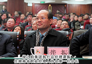 隨著商業(yè)社會的發(fā)展,職業(yè)經(jīng)理人正引領(lǐng)著未來的職業(yè)力量。在湖南,職業(yè)經(jīng)理人的迅速成長,已塑造出湖南全新的商業(yè)力量。2013年1月5日,2012湖南省職業(yè)經(jīng)理人大會暨湖南首屆優(yōu)秀職業(yè)經(jīng)理人評選頒獎典禮在長沙舉行,綠之韻集團(tuán)董事長胡國安獲評2012年度湖南省最受職業(yè)經(jīng)理人尊敬的十大企業(yè)家,綠之韻集團(tuán)執(zhí)行總經(jīng)理龔振作為湖南省職業(yè)經(jīng)理人協(xié)會首任會長出席會議。