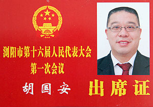 對胡國安董事長來說,人大代表,是一種榮譽,更是責任,既是動力,更是擔當。在他擔任瀏陽市第十五屆人大代表期間,充分履行人大代表的職責,反應(yīng)百姓心聲,積極響應(yīng)市委、市政府的號召,獻計獻策,關(guān)注民生,為瀏陽的經(jīng)濟繁榮、社會發(fā)展、民主建設(shè)等事業(yè)不遺余力,榮獲瀏陽市第十五屆“優(yōu)秀人大代表”稱號。