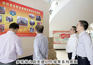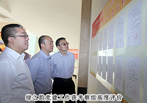 在調(diào)研中,彭繼球主席一行詳細(xì)了解了綠之韻的經(jīng)營(yíng)現(xiàn)狀及遠(yuǎn)景規(guī)劃,參觀了產(chǎn)品形象展廳,對(duì)“清調(diào)補(bǔ)衡”的產(chǎn)品理念及利稅、公益等企業(yè)公民行為給予高度評(píng)價(jià)。在綠之韻黨支部黨建工作成果系列展板前,彭繼球主席一行停下腳步,就公司黨建工作與胡國(guó)安董事長(zhǎng)進(jìn)行了交流。作為非公經(jīng)濟(jì)企業(yè)優(yōu)秀基層黨組織,綠之韻黨支部積極扶危濟(jì)困,德行并重,發(fā)展企業(yè),回饋社會(huì)。連續(xù)多年取得的黨建成果,受到了考察組一行的高度贊揚(yáng)。彭繼球主席重點(diǎn)指出:綠之韻黨支部在黨員隊(duì)伍的建設(shè)、發(fā)展教育管理、服務(wù)企業(yè)健康發(fā)展、為黨凝聚職工群眾等方面都做了大量的、有特色、有實(shí)效的工作,取得了明顯的成績(jī)。希望綠之韻黨支部在今后的工作中,進(jìn)一步完善機(jī)制,加強(qiáng)領(lǐng)導(dǎo),在推動(dòng)企業(yè)發(fā)展、服務(wù)群眾、凝聚人心、促進(jìn)和諧方面發(fā)揮出重要的作用。
