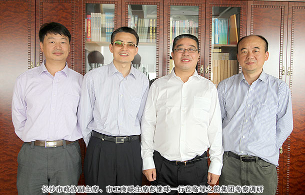 2012年10月13日,長(zhǎng)沙市政協(xié)副主席、市工商聯(lián)主席彭繼球,長(zhǎng)沙市委統(tǒng)戰(zhàn)部副部長(zhǎng)、工商聯(lián)黨組書(shū)記饒福明,長(zhǎng)沙市工商聯(lián)副主席傅純一行蒞臨綠之韻集團(tuán)考察調(diào)研,綠之韻集團(tuán)董事長(zhǎng)胡國(guó)安全程陪同。