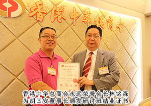 在香港工商業(yè)會(huì)長(zhǎng)研討班培訓(xùn)期間,胡國(guó)安董事長(zhǎng)隨班參觀了香港貿(mào)發(fā)局、香港中國(guó)企業(yè)協(xié)會(huì)、香港交易所等機(jī)構(gòu),為促進(jìn)香港、長(zhǎng)沙與國(guó)際間的經(jīng)貿(mào)合作和科技、文化交流等貢獻(xiàn)力量。胡董表示:長(zhǎng)沙具有中部崛起的后發(fā)優(yōu)勢(shì),隨著國(guó)家中部崛起戰(zhàn)略的逐步落實(shí)以及長(zhǎng)沙市的飛速發(fā)展,綠之韻集團(tuán)未來的戰(zhàn)略布局和發(fā)展策略與香港密不可分,希望能借助香港長(zhǎng)沙商會(huì)的成立契機(jī),加強(qiáng)與世界各地的經(jīng)貿(mào)交流互通,提升香港綠之韻國(guó)際集團(tuán)股份有限公司在香港地區(qū)的影響力,最終走出國(guó)門,走向世界。