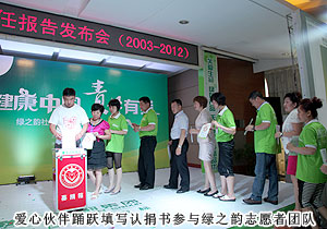 “每個(gè)夢(mèng)想都值得灌溉,眼淚變成雨水就能落下來,每個(gè)孩子都應(yīng)該被寵愛,他們是我們的未來……”在綠之韻員工與希望小學(xué)孩子們動(dòng)人的歌聲與舞蹈里,我們更能感到現(xiàn)場(chǎng)愛心傳遞的感動(dòng)。綠之韻副總經(jīng)理何健代表公司對(duì)最先涌現(xiàn)的一批綠之韻愛心志愿者先進(jìn)代表進(jìn)行了表彰。并與企業(yè)代表,經(jīng)銷商志愿者代表一同上臺(tái)莊嚴(yán)宣誓:嚴(yán)格遵守國(guó)家相關(guān)法律,拒絕傳銷,共同建設(shè)和諧社會(huì),共同將履行社會(huì)責(zé)任進(jìn)行到底。現(xiàn)場(chǎng)愛心經(jīng)銷商踴躍填寫“綠之韻志愿者認(rèn)捐書”積極參與“每天一元錢活動(dòng)”,支援綠之韻公益責(zé)任事業(yè)。