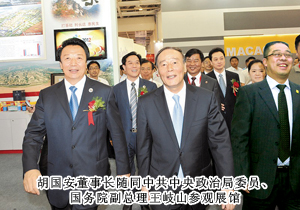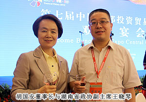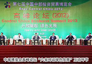 2012年5月18日,由國家商務(wù)部等十多個(gè)國家部委局和中部六省人民政府共同舉辦的第七屆中國中部投資貿(mào)易博覽會在湖南長沙隆重開幕,國家領(lǐng)導(dǎo)、經(jīng)濟(jì)學(xué)家、中外企業(yè)家代表匯聚一堂,共同探討促進(jìn)中國中部地區(qū)綠色發(fā)展、共商崛起的思路與舉措。中共中央政治局委員、國務(wù)院副總理王岐山,全國政協(xié)副主席、全國工商聯(lián)主席黃孟復(fù),墨西哥前總統(tǒng)彼得森??怂梗泄埠鲜∥瘯浿軓?qiáng)及山西、安徽、江西、湖北、河南五省各級領(lǐng)導(dǎo)出席開幕式。