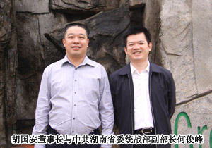 2012年4月13日,中共湖南省委統(tǒng)戰(zhàn)部副部長何俊峰一行蒞臨綠之韻集團(tuán),就湖南省“萬企聯(lián)村,共同發(fā)展” 30個(gè)省級優(yōu)秀市場項(xiàng)目之一的——綠之韻益陽安化萬畝中藥材種植基地建設(shè)情況進(jìn)行深入調(diào)研。湖南省優(yōu)秀政協(xié)委員、綠之韻集團(tuán)董事長胡國安、董事常務(wù)副總裁勞嘉全程陪同調(diào)研。