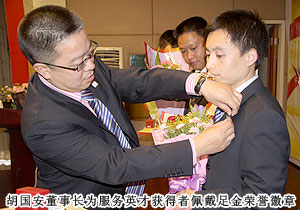 “綠之韻五年服務(wù)英才”是此次大會最受關(guān)注的獎項,也是綠之韻集團(tuán)對員工的高度認(rèn)可和最好的獎勵。胡國安董事長為獲獎的24名服務(wù)英才頒發(fā)香港周大福珠寶公司特約設(shè)計師量身定做的、鐫刻獲獎?wù)呙值淖憬饦s譽徽章和獎金。五年來,他們與綠之韻同舟共濟、艱苦創(chuàng)業(yè),在崗位上勤勤懇懇、任勞任怨,參與、見證綠之韻一路走來的發(fā)展歷程,將綠之韻的成長歲月與自己的青春年華融為一體,無論遇到任何環(huán)境的改變,從未改變他們的熱情、闖勁,一直在綠之韻發(fā)展的道路上傾情奉獻(xiàn)!