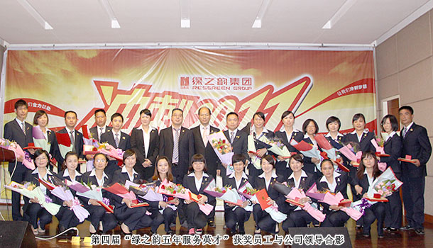 2011年11月2日,綠之韻集團(tuán)2011年第三季度員工大會暨“綠之韻五年服務(wù)英才”頒獎典禮在綠之韻國際大酒店隆重召開,綠之韻集團(tuán)高層領(lǐng)導(dǎo)及全體員工及各下屬分支機構(gòu)員工代表出席會議。本次會議主題以“沖刺2011”為主題,全面總結(jié)了過去一季度各項工作,并開展下一步工作部署,爭取在2011年最后沖刺階段獲得更大收獲。