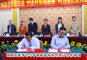 2011年10月16日,由中共湖南省委統(tǒng)戰(zhàn)部、長(zhǎng)沙市工商聯(lián)舉辦的“黨派合作促共建,村企對(duì)接謀發(fā)展,兩為幫扶建和諧”簽約儀式在瀏陽革命老區(qū)——胡耀邦總書記故里中和鎮(zhèn)召開。中共湖南省委統(tǒng)戰(zhàn)部副部長(zhǎng)唐建、長(zhǎng)沙市政協(xié)副主席、民建長(zhǎng)沙市委主委段安娜、長(zhǎng)沙市政協(xié)副主席、市工商聯(lián)主席彭繼球、中共長(zhǎng)沙市委統(tǒng)戰(zhàn)部常務(wù)副部長(zhǎng)劉應(yīng)群等出席簽約儀式。綠之韻集團(tuán)董事長(zhǎng)胡國(guó)安作為長(zhǎng)沙市工商聯(lián)副主席積極參與“村企對(duì)接工作”與瀏陽市中和鎮(zhèn)簽訂村企對(duì)接簽約,規(guī)劃在當(dāng)?shù)亟ㄔO(shè)2000畝紫錐菊、蘆薈、黃芪中藥材基地。據(jù)悉,這是綠之韻集團(tuán)“萬企聯(lián)村”萬畝中藥材基地建設(shè)項(xiàng)目繼益陽、郴州之后第三個(gè)選址點(diǎn)。