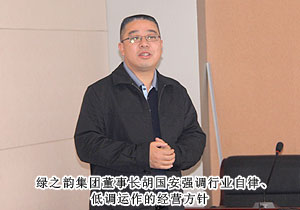 綠之韻集團(tuán)董事長胡國安在會(huì)上發(fā)表講話,向各位領(lǐng)導(dǎo)的蒞臨和指導(dǎo)表示熱烈的歡迎和誠摯的感謝,同時(shí)表明綠之韻集團(tuán)將繼續(xù)貫徹落實(shí)相關(guān)法律法規(guī),秉承“行業(yè)自律,低調(diào)運(yùn)作”的經(jīng)營方針,積極配合各級部門的打傳工作,為維護(hù)社會(huì)穩(wěn)定不斷努力。