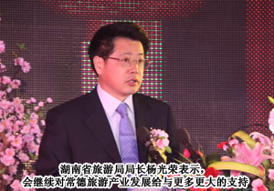 開幕式由中共常德市委副書記、市人大常委會主任曹儒國主持。湖南省人民政府副省長劉力偉,國家旅游局綜合司巡視員唐洪廣,湖南省旅游局局長楊光榮,中共常德市委副書記、市長陳文浩以及常德市各級領(lǐng)導(dǎo)出席了開幕儀式,與近1000名來自全國各地的旅游客商共話常德旅游業(yè)的發(fā)展。