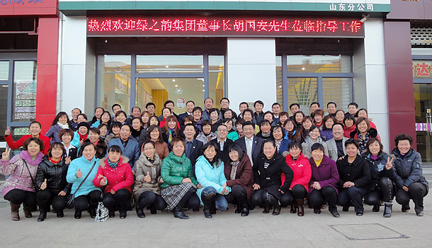 2010年12月6日—9日,嚴(yán)寒籠罩著齊魯大地,但綠之韻山東分公司卻特別熱鬧,因?yàn)榧瘓F(tuán)董事長(zhǎng)胡國安親臨分公司考察,山東各地區(qū)分銷伙伴紛紛匯聚一堂,與胡國安董事長(zhǎng)促膝長(zhǎng)談,共話未來,綠之韻人火一樣的情懷驅(qū)走了所有寒意。