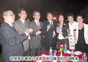 24日晚上,中國駐印大使館在使館內(nèi)舉行招待會為代表團(tuán)送行并慶?;顒訄A滿成功。中國駐印度大使張炎在招待會上表示,中印百人青年代表團(tuán)互訪活動是由兩國領(lǐng)導(dǎo)人達(dá)成的一項共識,是兩國青年開展交流、互相學(xué)習(xí),增進(jìn)友誼與合作的重要平臺,為兩國友好合作做出了重要貢獻(xiàn)。張炎大使還介紹了近年來中印兩國關(guān)系不斷發(fā)展的情況,并表示青年是中印友誼的未來,他希望通過此次訪問能進(jìn)一步加強中印兩國青年之間的交流與合作。