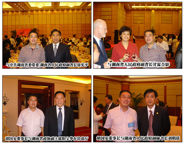 在隨后舉行的省情推介會(huì)暨重大合作項(xiàng)目簽約儀式上,胡國(guó)安董事長(zhǎng)與中外嘉賓及客商一同觀賞了專題宣傳片《湖南,讓夢(mèng)想更精彩》。大會(huì)由副省長(zhǎng)甘霖主持,商務(wù)部外資司副司長(zhǎng)黃愛菊在大會(huì)上致辭。上海市委副書記、上海人民政府市長(zhǎng)韓正,原外經(jīng)貿(mào)部部長(zhǎng)、中國(guó)外商投資企業(yè)協(xié)會(huì)會(huì)長(zhǎng)石廣生,上海市委常委、副市長(zhǎng)屠光紹出席推介會(huì)。湖南省省長(zhǎng)周強(qiáng)向2000多位境內(nèi)外客商熱情洋溢地推介湖南,希望加強(qiáng)與長(zhǎng)三角經(jīng)濟(jì)圈經(jīng)貿(mào)合作,并熱情邀請(qǐng)境內(nèi)外客商投資湖南。