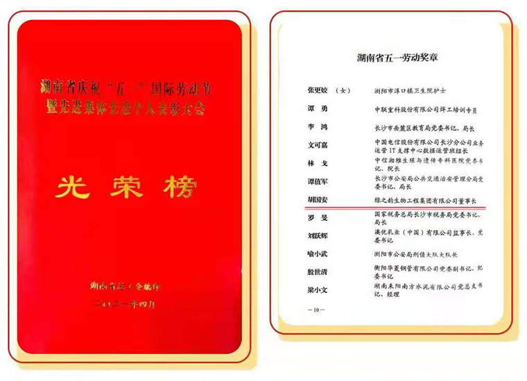 2021年4月29日上午,湖南省慶祝“五一”國際勞動節(jié)暨先進集體先進個人表彰大會在長沙召開。中共湖南省委書記、省人大常委會主任許達(dá)哲,省委副書記、省長毛偉明,省領(lǐng)導(dǎo)謝建輝、張劍飛、馮毅、吳桂英、周農(nóng)、陳飛出席。綠之韻集團董事長胡國安參加會議,并被光榮授予“湖南省五一勞動獎?wù)隆睒s譽。