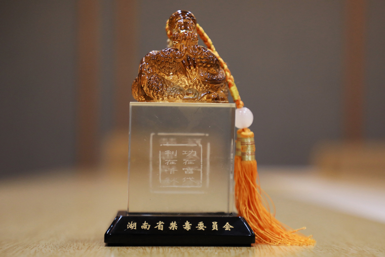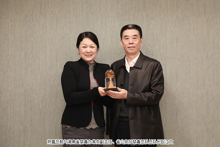 今年3月,湖南省禁毒協(xié)會(huì)第四屆會(huì)員代表大會(huì)在長沙召開,綠之韻集團(tuán)當(dāng)選湖南省禁毒協(xié)會(huì)第四屆理事會(huì)副會(huì)長單位。借此工作交流之際,湖南省禁毒協(xié)會(huì)會(huì)長董瑛代表省禁毒協(xié)會(huì)向胡國安董事長授予“湖南省禁毒協(xié)會(huì)副會(huì)長單位”牌匾。董瑛會(huì)長對(duì)綠之韻集團(tuán)大力參與和支持禁毒工作的行為表示衷心的感謝,她強(qiáng)調(diào),毒品是全人類的公害,毒品問題的發(fā)展蔓延,不但嚴(yán)重侵害人民群眾的身心健康,造成巨大的經(jīng)濟(jì)損失,而且嚴(yán)重?cái)纳鐣?huì)風(fēng)氣,污染社會(huì)環(huán)境,渙散民族精神,成為影響經(jīng)濟(jì)社會(huì)發(fā)展、影響子孫后代的重大隱患。新型毒品還有一個(gè)后發(fā)作時(shí)期,可能3-5年,未來吸食毒品的群體性事件和吸毒人員的肇事肇禍?zhǔn)录?huì)比較多,作為社會(huì)人士,我們不僅要增強(qiáng)參與禁毒斗爭的自覺性和抵御毒品的能力,更應(yīng)該竭盡全力普及宣傳禁毒知識(shí),以達(dá)到社會(huì)環(huán)境的凈化。