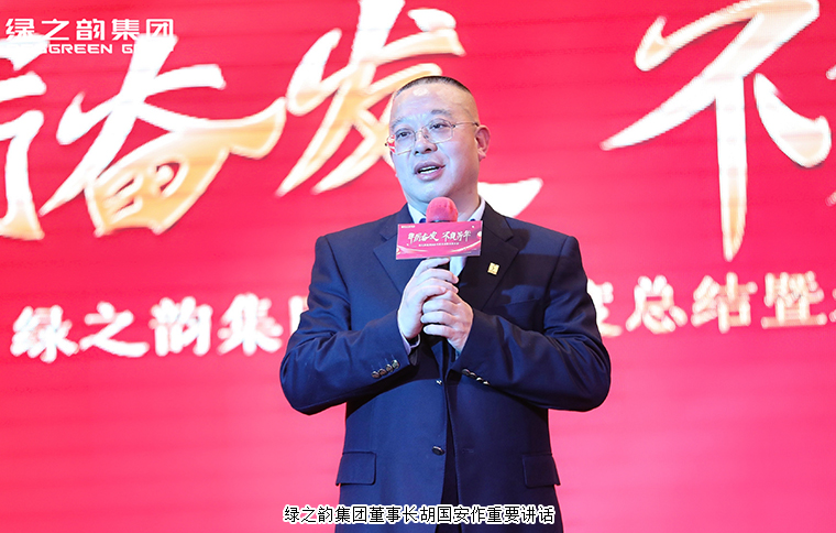 在全場最為熱烈的掌聲中,綠之韻集團董事長胡國安上臺講話。他首先向全體綠之韻家人致以誠摯的新年祝福,并對所有獲獎集體和個人予以高度評價。他表示,從大家身上,能看到不斷奮進中的綠之韻故事、綠之韻成績、綠之韻未來……從2021年走來,雖遇坎坷,但綠之韻精神讓我們化險為夷、堅韌生長。未來可期,迎難而上,2022年將面臨更加嚴峻的考驗,希望企業(yè)改革和創(chuàng)新管理制度、服務(wù)模式、人才培養(yǎng)機制,期待奮斗的綠之韻人勠力同心、奮楫爭先,以更大努力、更強自信、更穩(wěn)步伐全力推進“第四個五年規(guī)劃”和“大品牌、大健康、大金融”戰(zhàn)略,保障企業(yè)行穩(wěn)致遠,共同開創(chuàng)綠之韻更加美好的明天。
