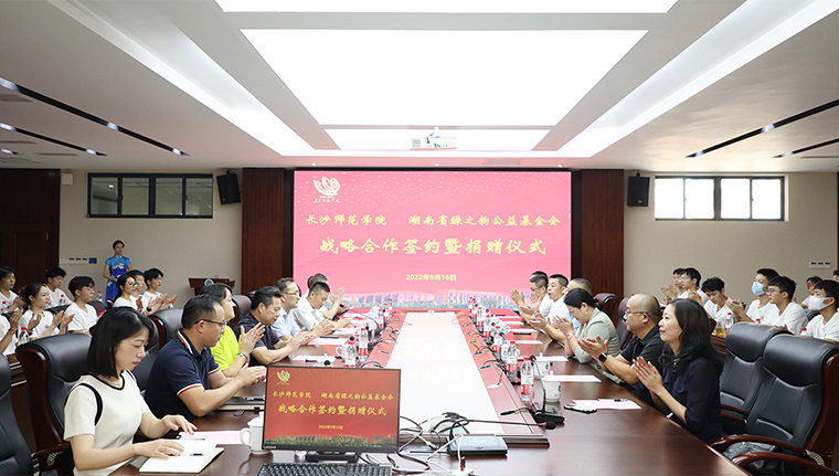 為進(jìn)一步推進(jìn)幼體融合、助力學(xué)前教育高質(zhì)量發(fā)展,2022年9月16日,長沙師范學(xué)院與湖南省綠之韻公益基金會(huì)戰(zhàn)略合作簽約暨捐贈(zèng)儀式在長沙師范學(xué)院舉行。湖南省政協(xié)委員胡國安通過綠之韻公益基金會(huì)捐資40萬元與長沙師范學(xué)院共建湖南省幼兒體質(zhì)健康促進(jìn)研究院。長沙師范學(xué)院黨委副書記、校長曹曉鮮,黨委委員、副校長黃快林,黨委委員、副校長徐慶軍,奧運(yùn)冠軍、體育運(yùn)動(dòng)委員會(huì)專職副主任龔智超,體育科學(xué)學(xué)院院長陳捷,創(chuàng)新創(chuàng)業(yè)學(xué)院院長張德啟,教務(wù)處副處長陳亮,校友會(huì)副秘書長李月;湖南省政協(xié)委員、長沙師范學(xué)院客座教授、綠之韻集團(tuán)董事長胡國安,湖南省女企業(yè)家協(xié)會(huì)常務(wù)副會(huì)長、綠之韻集團(tuán)董事總裁、湖南省綠之韻公益基金會(huì)理事長勞嘉,傲迪瑪汽車董事局主席、湖南省綠之韻公益基金會(huì)副會(huì)長胡武安,湖南馬良數(shù)碼科技股份有限公司董事長周益安,湖南湘體愛動(dòng)教育科技有限公司董事長張亞球,湖南馬良數(shù)碼科技股份有限公司總經(jīng)理李祥龍參加活動(dòng)。