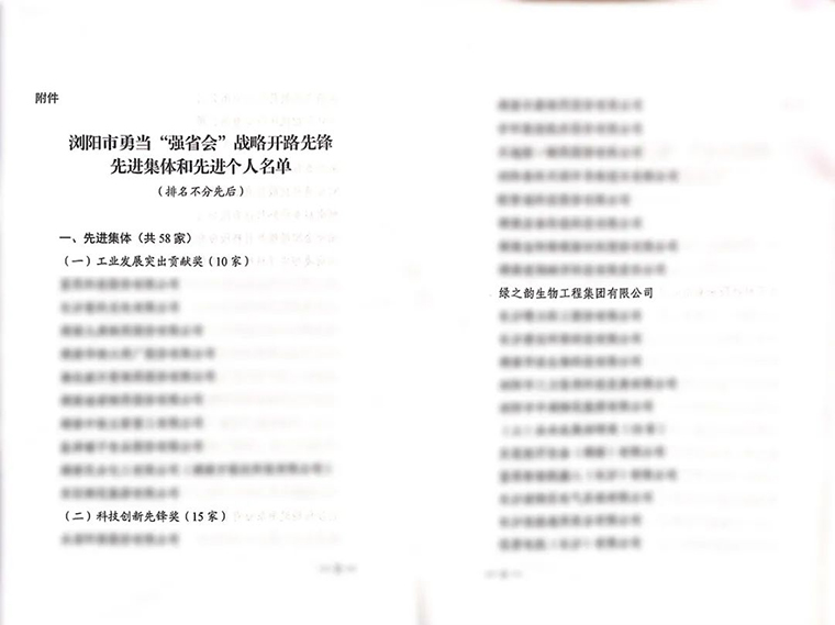 會(huì)上,中共瀏陽(yáng)市委常委、常務(wù)副市長(zhǎng)馮賽軍宣讀了由瀏陽(yáng)市委市政府印發(fā)的《瀏陽(yáng)市人民政府關(guān)于2022年度財(cái)政性資金獎(jiǎng)勵(lì)政策兌現(xiàn)的通知》《中共瀏陽(yáng)市委瀏陽(yáng)市人民政府關(guān)于表彰瀏陽(yáng)市勇當(dāng)“強(qiáng)省會(huì)”戰(zhàn)略開(kāi)路先鋒先進(jìn)集體和先進(jìn)個(gè)人的決定》,對(duì)近年來(lái)在瀏陽(yáng)市深入貫徹黨的十九屆歷次全會(huì)及黨的二十大精神、全面落實(shí)“三高四新”戰(zhàn)略定位和使命任務(wù)、勇當(dāng)強(qiáng)省會(huì)戰(zhàn)略開(kāi)路先鋒、推動(dòng)經(jīng)濟(jì)高質(zhì)量發(fā)展中涌現(xiàn)出的一大批敢闖敢干、唯實(shí)惟先先進(jìn)單位和個(gè)人予以表彰獎(jiǎng)勵(lì)。綠之韻集團(tuán)憑借著在產(chǎn)品研發(fā)、科技創(chuàng)新方面的優(yōu)異表現(xiàn)榮獲瀏陽(yáng)市“科技創(chuàng)新先鋒獎(jiǎng)”。
