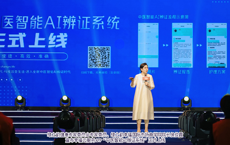 大會伊始,所有的幸福代言人共同唱響《為了你的幸?!?,拉開了本次大會的序幕。綠之韻健康專家委員會專家委員、綠之韻幸福國際市場商學院院長侯俊霞宣布幸福云服務app“中醫(yī)智能AI辦證系統(tǒng)”正式上線。綠韻悅喜智能科技有限公司首席研發(fā)專家、綠之韻幸福國際市場商學院特聘教授駱春崗介紹了“中醫(yī)智能AI辦證系統(tǒng)”的研發(fā)理念和未來前景。