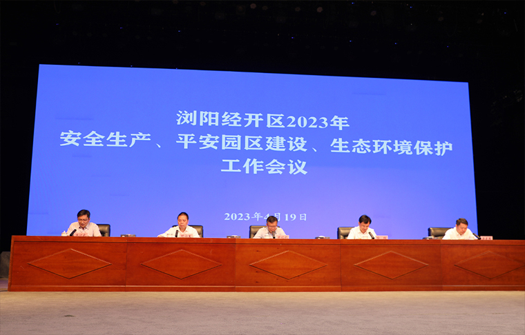 2023年4月19日,瀏陽經(jīng)開區(qū)召開2023年安全生產(chǎn)、平安園區(qū)建設(shè)、生態(tài)環(huán)境保護工作大會,深入學(xué)習貫徹黨的二十大精神和習近平總書記關(guān)于安全生產(chǎn)、環(huán)境保護的系列重要指示精神,以及中央、省市近期關(guān)于安全生產(chǎn)、生態(tài)環(huán)境保護和平安園區(qū)建設(shè)決策部署,全面打好污染防治攻堅戰(zhàn),扎實推進安全生產(chǎn)大檢查“強執(zhí)法防事故”雙百行動,奮力建設(shè)平安園區(qū),為園區(qū)經(jīng)濟社會發(fā)展營造良好的環(huán)境。