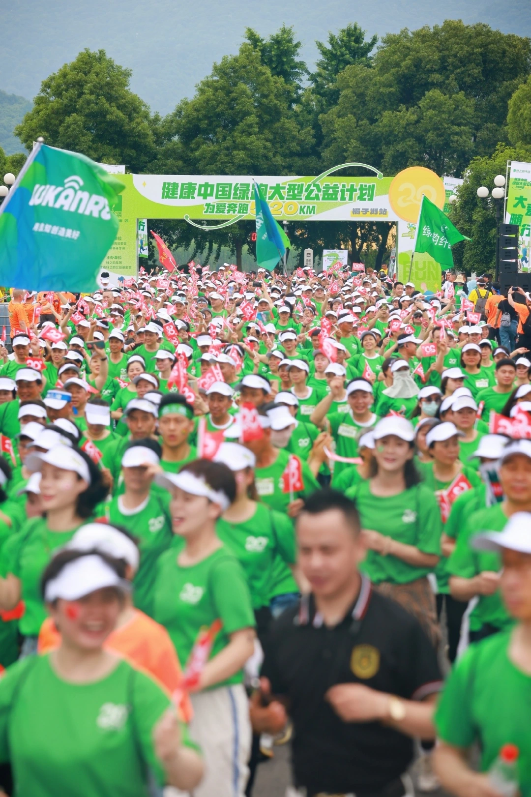 5月19日,2023綠之韻“健康中國·綠跑大型公益計劃”在長沙橘子洲開跑。舉重奧運冠軍王明娟、舉重世界冠軍廖秋云與來自全國各地的3000多名愛心志愿者、跑步愛好者、熱心市民為愛奔跑5.20公里。