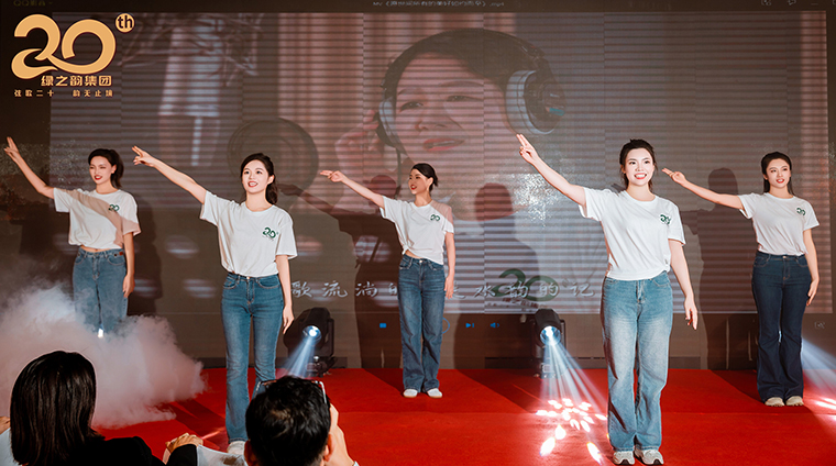 隨后,一段綠之韻集團(tuán)20周年紀(jì)念曲《愿世間所有的美好如約而至》現(xiàn)代舞表演為晚宴帶來(lái)難忘瞬間,綠之韻舞蹈演員穿著有民族特色的服飾,以現(xiàn)代舞穿插手語(yǔ)舞的形式,展現(xiàn)了紀(jì)念曲的優(yōu)美韻律和柔美風(fēng)情。悠揚(yáng)的歌聲,飽含深情的歌詞,將無(wú)懼歲月,把握當(dāng)下,勇敢追逐夢(mèng)想的綠之韻精神娓娓道來(lái),同時(shí)也唱出了所有綠之韻人堅(jiān)持活出真我,做更好自己的初心。
