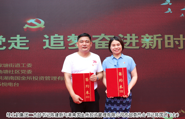 活動(dòng)最后,綠之韻集團(tuán)二支部與湖南國(guó)金所支部舉行了結(jié)對(duì)共建簽約儀式。綠之韻集團(tuán)黨委書(shū)記劉云表示,這不僅是一次支部之間的結(jié)隊(duì)共建、互幫互學(xué)活動(dòng),更是一次愛(ài)國(guó)主義教育,將熱愛(ài)祖國(guó)的種子播撒在每位黨員的心田里,也讓所有的黨員再一次體會(huì)了身為中國(guó)人的驕傲和對(duì)祖國(guó)的深情。未來(lái),兩個(gè)支部可以優(yōu)勢(shì)互補(bǔ),互取所長(zhǎng),在今后的工作與生活中,始終保持黨員的初心,牢記肩頭的使命,一如既往的積極履行黨員的義務(wù)和職責(zé),發(fā)揮黨員的先鋒模范帶頭作用,砥礪奮進(jìn),為實(shí)現(xiàn)“中國(guó)夢(mèng),綠之韻夢(mèng)”做出更大的貢獻(xiàn)!