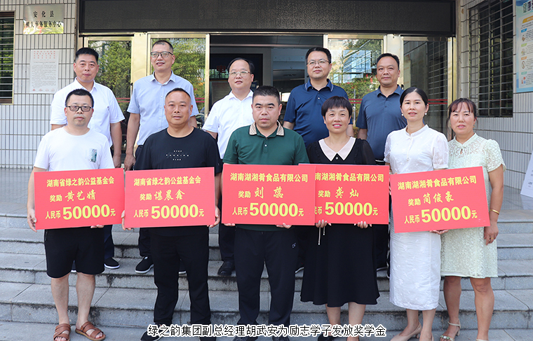 “我是安化走出來(lái)的寒門(mén)學(xué)子,我和很多同學(xué)一樣都是出生在貧苦的山村,從小就非常渴望走出大山,能夠改變家族的命運(yùn),有機(jī)會(huì)幫助更多的人成長(zhǎng)和發(fā)展,有機(jī)會(huì)回報(bào)社會(huì)及家鄉(xiāng)?!本G之韻集團(tuán)董事長(zhǎng)胡國(guó)安深情地說(shuō),我們不僅要把企業(yè)做好,也要回饋社會(huì),十年樹(shù)木,百年樹(shù)人,捐資助學(xué)是最好的回饋社會(huì)方式。多年來(lái),綠之韻集團(tuán)始終堅(jiān)持把公益事業(yè)上升到企業(yè)發(fā)展戰(zhàn)略高度。先后在全國(guó)各地援建了11所希望學(xué)校,投入300萬(wàn)元在全國(guó)各地開(kāi)展“綠韻圓夢(mèng)?書(shū)香助學(xué)”活動(dòng),陸續(xù)投入1000萬(wàn)元開(kāi)展“樹(shù)人行動(dòng)”,投入1000萬(wàn)元設(shè)立“圓夢(mèng)基金”持續(xù)開(kāi)展綠韻圓夢(mèng)行動(dòng)……累計(jì)向社會(huì)捐贈(zèng)款物8600多萬(wàn)元。今年8月,綠之韻公益基金會(huì)攜手湖南省慈善總會(huì)、芒果公益開(kāi)啟“愛(ài)心改變命運(yùn)”助學(xué)季,上線(xiàn)“2024愛(ài)心改變命運(yùn)”網(wǎng)絡(luò)籌款募捐項(xiàng)目,向社會(huì)籌措助學(xué)資金,資助湖南省內(nèi)勵(lì)志學(xué)子圓夢(mèng)大學(xué)。希望通過(guò)持續(xù)的捐贈(zèng)活動(dòng),為孩子們創(chuàng)造更好、更舒適的學(xué)習(xí)成長(zhǎng)環(huán)境,讓遇到困難的學(xué)生得到幫助,讓他們感受到來(lái)自社會(huì)的關(guān)愛(ài)。未來(lái),還希望影響和帶動(dòng)更多有愛(ài)心的人士參與到捐資助學(xué)行動(dòng)中來(lái),幫助青少年健康成長(zhǎng),為安化教育事業(yè)高質(zhì)量發(fā)展作出積極貢獻(xiàn)。愿每一位優(yōu)秀的學(xué)子都能在這榮耀與激勵(lì)的交織中,綻放出更加絢爛的光芒,書(shū)寫(xiě)屬于自己的壯麗篇章,為社會(huì)的進(jìn)步貢獻(xiàn)無(wú)盡的智慧與力量。