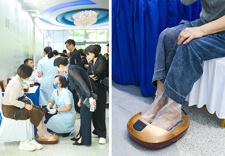 會上,還舉行了“享居足護(hù)儀”新品上市發(fā)布會。綠之韻健康專家委員會專家委員、綠之韻幸福國際市場商學(xué)院院長侯俊霞,綠之韻幸福國際商學(xué)院市場特聘教授、綠韻悅喜智能科技有限公司首席研發(fā)專家駱春崗,綠韻悅喜智能科技有限公司總經(jīng)理楊邢軒共同見證由綠之韻幸福國際自主研發(fā)的、具有核心競爭力、高含金量的“拳頭”新品——綠之韻享居足護(hù)儀的震撼發(fā)布,掀起了會場的高潮。