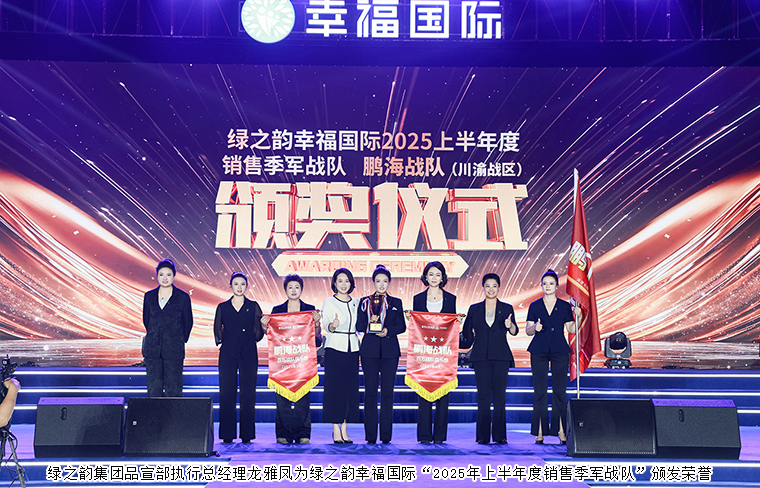 綠之韻幸福國際的榮耀殿堂里,百萬戰(zhàn)隊的旌旗迎風招展,熠熠生輝。那些在市場一線沖鋒陷陣的戰(zhàn)隊,如同璀璨的星辰,閃耀著奪目的光芒。他們以無畏的勇氣和堅韌的毅力,帶領團隊取得了一個又一個輝煌的成績。綠之韻集團市場運營中心市場業(yè)務總監(jiān)譚紅、市場運營中心市場業(yè)務總監(jiān)喻鳴鸞為“綠之韻幸福國際4-5月單月達成百萬戰(zhàn)隊”頒發(fā)榮譽。綠韻悅喜智能科技有限公司總經理楊邢軒,綠之韻幸福國際市場商學院特聘教授、綠韻悅喜智能科技有限公司首席研發(fā)專家駱春崗共同為“綠之韻幸福國際4-5月雙月達成百萬戰(zhàn)隊”頒發(fā)榮譽。綠之韻幸福國際市場商學院院長、綠之韻健康專家委員會專家委員侯俊霞為綠之韻幸福國際“2025年5月百萬戰(zhàn)隊冠軍”玖樂戰(zhàn)隊頒發(fā)榮譽;綠之韻國際商學院執(zhí)行院長黎芋成、綠之韻集團運營部執(zhí)行總經理·國際商學院常務副院長陳敏、綠之韻集團品宣部執(zhí)行總經理龍雅鳳依次為綠之韻幸福國際“2025年上半年度銷售冠亞季軍戰(zhàn)隊”玖德戰(zhàn)隊、玖翔戰(zhàn)隊、鵬海戰(zhàn)隊頒發(fā)榮譽。戰(zhàn)旗所向,所向披靡,這正是綠之韻幸福國際“戰(zhàn)區(qū)化管理”最生動的演繹。