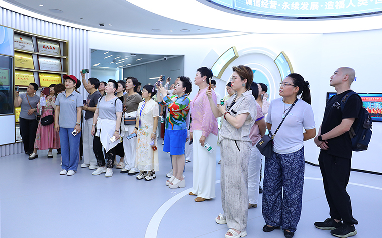 培訓(xùn)尾聲,綠之韻碧波庭精英們滿懷期待地參觀了綠之韻中心園林景觀和17層數(shù)智化科技展廳。展廳深度融入企業(yè)“水之道”核心理念,以“水的旅程”為敘事主線,貫穿企業(yè)初心與情懷,并巧妙融合“東哲西技”概念,彰顯獨特文化底蘊(yùn)。展廳運用前沿數(shù)字技術(shù)打造沉浸式互動體驗,構(gòu)建起智慧化的新時代中醫(yī)藥文化展示空間。通過立體空間的多維度呈現(xiàn),生動展示了集團(tuán)的企業(yè)文化、發(fā)展歷程、黨建與公益事業(yè)、產(chǎn)品理念、科研實力及未來愿景,呈現(xiàn)了綠之韻在大健康領(lǐng)域的創(chuàng)新探索與重要成果。通過高科技展示與沉浸式體驗,大家近距離感受了公司雄厚的發(fā)展實力、豐富的產(chǎn)品矩陣、深厚的品牌歷程以及面向未來的宏偉藍(lán)圖,深受鼓舞,信心倍增,為奔赴未來的征程注入無限動能。