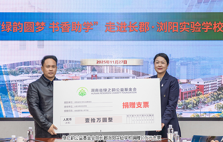 為積極響應(yīng)國家鄉(xiāng)村振興戰(zhàn)略,營造愛學(xué)、勤學(xué)、好學(xué)、比學(xué)的濃厚氛圍,2024年,湖南省綠之韻公益基金會通過“綠韻圓夢·書香助學(xué)”項(xiàng)目捐贈30萬元愛心資金,專項(xiàng)用于長郡瀏陽實(shí)驗(yàn)學(xué)校助學(xué)項(xiàng)目。2025年11月27日, “綠韻圓夢·書香助學(xué)”活動再次走進(jìn)該校為優(yōu)秀學(xué)子頒發(fā)助學(xué)金,以公益力量助力鄉(xiāng)村振興背景下的文化建設(shè)與教育事業(yè)發(fā)展,為瀏陽市教育城鄉(xiāng)一體化進(jìn)程注入溫暖動能。