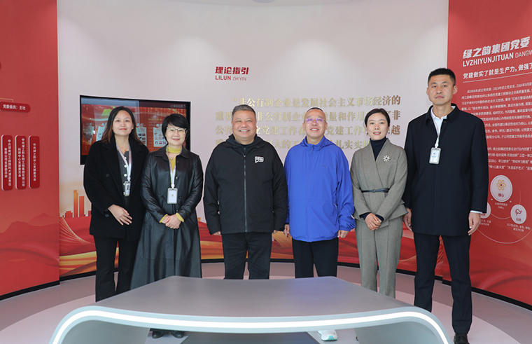 陳剛主席一行先后走進(jìn)綠之韻中心數(shù)智化科技展廳、黨建教育陣地與政協(xié)委員工作站。數(shù)智化科技展廳以 “水之道” 文化為核心設(shè)計(jì)理念,融合東方哲學(xué)智慧與西方先進(jìn)技術(shù),通過(guò)數(shù)字化互動(dòng)系統(tǒng)構(gòu)建起多感官沉浸式體驗(yàn)空間,全面展現(xiàn)了企業(yè)發(fā)展歷程、企業(yè)文化、全鏈條產(chǎn)品體系、核心科研突破及公益實(shí)踐足跡。在黨建教育陣地,劉云書(shū)記詳細(xì)匯報(bào)了企業(yè)非公黨建成果:自2006年成立黨支部以來(lái),企業(yè)已構(gòu)建起黨委為核心、工會(huì)與公益基金會(huì)協(xié)同聯(lián)動(dòng)的黨建格局,創(chuàng)新推行 “三色三有三亮” 工程與 “三維管理模式”,打造特色黨建品牌,實(shí)現(xiàn)黨建與企業(yè)發(fā)展同頻共振。
