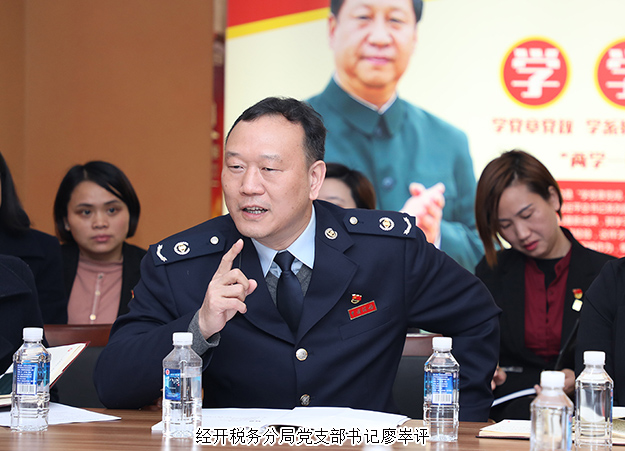 經(jīng)開稅務(wù)分局黨支部書記廖崒評在分享會總結(jié)發(fā)言時表示:“學習強國”一經(jīng)上線便受到許多人追捧,平臺支持創(chuàng)建學習組織,設(shè)有“學習積分”“在線答題”“日程提醒”等管理和激勵機制。讓學習變得有組織、有管理、更智能、更便捷。我們要充分利用平臺,以持之以恒的學習態(tài)度,結(jié)合自己的思想實際、工作實際,有針對性地拓展個人學習空間,采取自主學習、行動學習、團隊學習等方式激發(fā)學習興趣,強化學習效果。