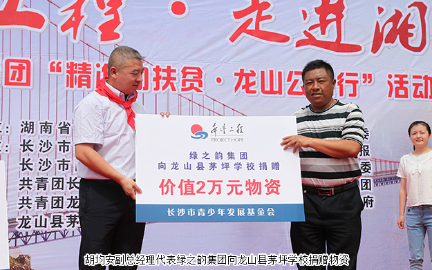 本次活動是在湖南青基會、長沙團市委、湘西團州委指導(dǎo)下,由長沙青基會、長沙市青少年宮、長沙晚報、長沙市圖書館、芙蓉團區(qū)委、雨花團區(qū)委、長沙團縣委、長沙市衛(wèi)計委團委、綠之韻集團共同主辦;龍山團縣委、龍山縣教體局、龍山縣茅坪鄉(xiāng)政府共同承辦。湖南青基會副秘書長陳薇羽,長沙團市委副書記康然,湘西團州委書記向汝蓮,中共龍山縣委副書記陳忠耀、縣委常委、組織部長石紅梅、縣委常委、縣委辦主任符家波及相關(guān)單位負責人出席,綠之韻集團(直銷業(yè)務(wù))副總經(jīng)理胡均安受邀參加本次活動。