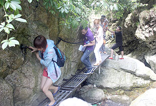 在湖南省安化縣的崇山峻嶺和山澗溪流之間,綿延著一條神秘的茶馬古道。千百年來,無數(shù)的馬幫在這條道路上默默行走,悠遠的馬鈴聲,回蕩在山谷、急流和村寨上空,開辟了一條通往域外的經(jīng)貿(mào)之路,形成了世界上地勢最高、山路最險、距離最遙遠的茶馬文明古道。在關(guān)山峽谷層巖疊翠,怪石嶙峋的道路上行走,綠之韻同仁們盡情體驗了一番攀巖探險的刺激和樂趣。正是因為古道的艱險超乎尋常,沿途壯麗的自然景觀也不斷地激發(fā)人潛在的勇氣、力量和忍耐。“馬幫憑借自己的剛毅、勇敢和智慧,用心血和汗水澆灌了一條通往茶馬古道的生存之路、探險之路和人生之路。茶馬古道上馬蹄印仍歷歷在目,帶著我們遙憶先輩們的經(jīng)貿(mào)故事,值得我們深思和學(xué)習(xí)!”綠之韻董事常務(wù)副總裁勞嘉深深感慨道。