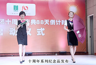 啟動儀式上,綠之韻集團品牌設(shè)計師彭興、綠之韻國際商學院講師宋沂芳為大家介紹了“十周年終端氛圍營造”活動的概況,包括“十周年品牌形象終端氛圍布置”、“十周年外場視覺設(shè)計布置方案及舞美設(shè)計發(fā)布”和“十周年紀念品開發(fā)”三個方面。在全場期待的目光中,十周年禮品實物:十周年紀念茶、十周年紀念圍巾、十周年發(fā)光紀念胸章、十周年卡片U盤、十周年紀念傘、十周年紀念多功能包(洗漱包)、十周年紀念幣,首次全景呈現(xiàn)在大家的眼前,迎來了全場一陣又一陣尖叫聲!
