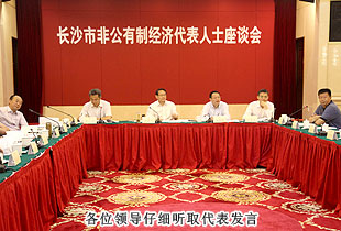 長沙要成就更好更快發(fā)展的偉業(yè),實現(xiàn)“六個走在前列”的目標,必須采取積極有效的措施,推動非公企業(yè)做強做大做優(yōu),促進非公有經(jīng)濟健康快速發(fā)展。2013年6月8日,長沙市非公經(jīng)濟代表人士座談會在湘麓山莊成功舉行。中共湖南省委常委、長沙市委書記易煉紅,中共長沙市委、市政協(xié)有關領導同志,中共長沙市委統(tǒng)戰(zhàn)部、市農(nóng)辦、市發(fā)改委、市工信局、市科技局、市人社局、市國土局、市商務局、市工商聯(lián)主要負責同志,綠之韻集團董事長胡國安等非公經(jīng)濟代表人士,“激活民間資本、提振創(chuàng)業(yè)信心”課題調(diào)研組負責人參加了本次會議。